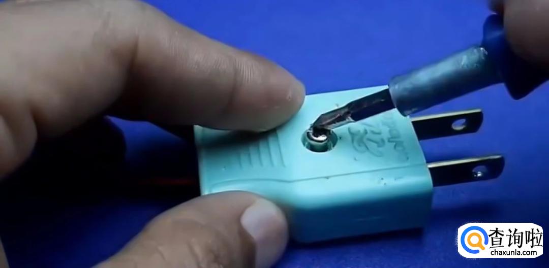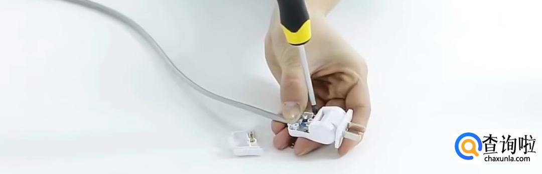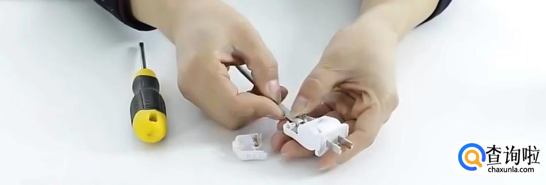 首先我们将插头拆开,把上面的螺丝拧开。(拧下来的螺丝一定要保管好,不要弄丢了)