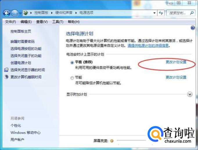 然后点击更改计划设置链接,如下图所示: