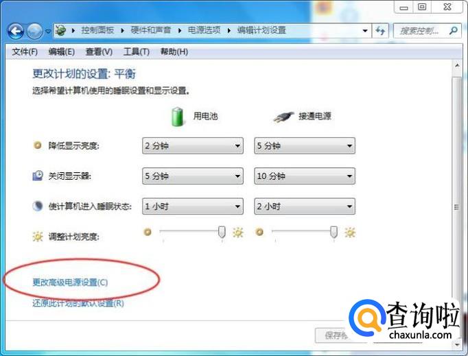 更改高级电源设置