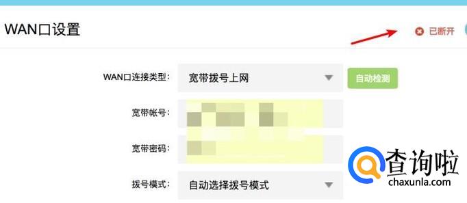 打开后,可以看到现在WAN口的连接状态是断开的。