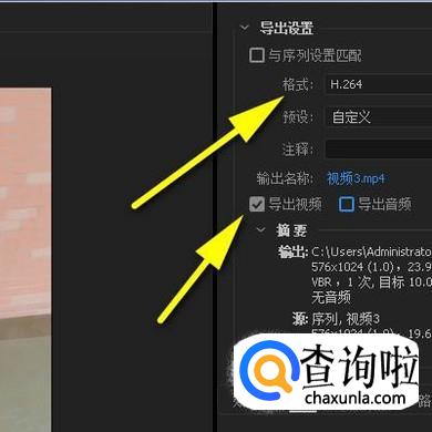 看面板右边这里,点开格式的下拉按钮,在弹出的各种格式中,选择H.264格式,再勾选:视频