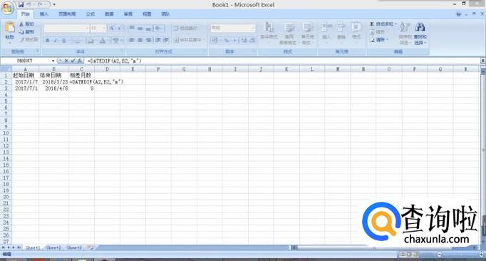 计算相差月数,在C2单元格输入“=DATEDIF(A2,B2,"m")”下拉即可使整个C列都使用这个函数。下拉即可使整个C列都使用这个函数。
