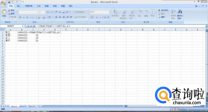 计算周岁,在C1单元格输入“=(YEAR(TODAY())-LEFT(B1,4))”下拉即可使整个C列都使用这个函数。下拉即可使整个C列都使用这个函数。