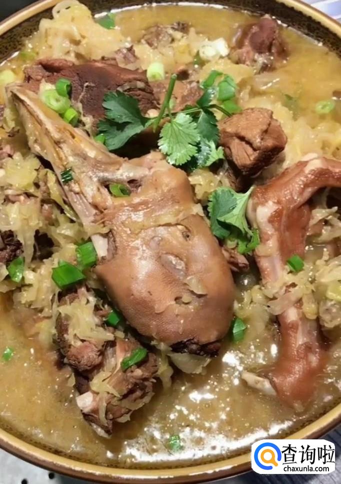 最后临出锅前放点味精,盛入盘中,撒上一些香菜,美味的大鹅炖酸菜就制作完成啦!