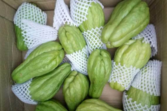 每千克鲜瓜中含蛋白质5克、脂肪1克、纤维素30克、碳水化合物77克,还含有维生素C220毫克,核黄素0.1毫克,含钙500毫克、磷320毫克、铁40毫克。佛手瓜既可做菜,又能当水果生吃。加上瓜形如两掌合十,有佛教祝福之意,深受人们喜爱。