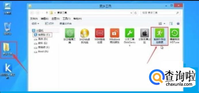 进入快启动win10pe系统桌面后,打开桌面上的“更多工具”文件夹,找到“系统引导自动修复”图标并双击打开。