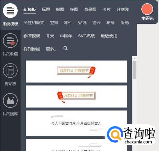 点击进入【新建一个图文】,你就可以根据自己的想法排一个你想要的图文版式,在屏幕的左侧是它的功能区,有标题、正文、分割线等模板和图案供你选择