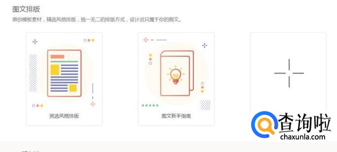 就可以看到三个选项,即【挑选风格排版】【图文新手指南】【新建一个图文】,它们的功能各有不同