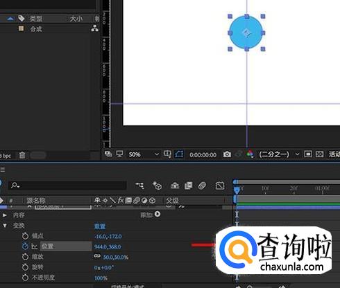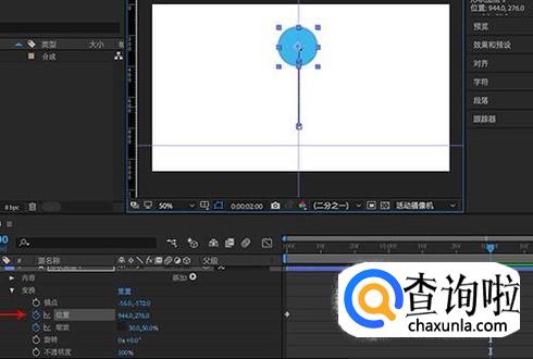 接下来开始设置关键帧,在落下之后大小是不会有变化的,添加一个位置关键帧就行了。