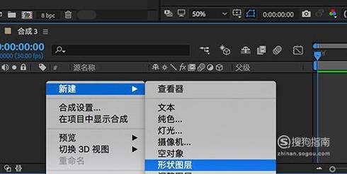 打开AE软件,ctrl+n新建合成之后,右键点击图层面板,再新建一个形状图层。