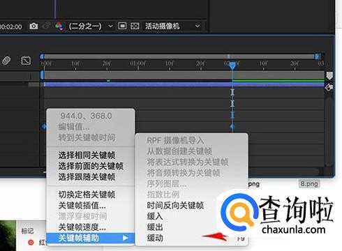 框选所有关键帧,右键点击关键帧,选择“关键帧辅助-缓动”,添加一个缓动效果能够让动效更为柔和。