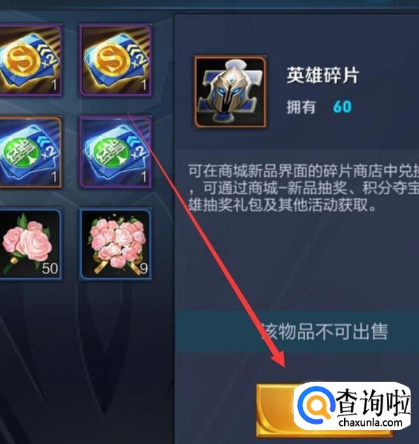 进入之后,在“道具”页面选择“英雄碎片”,然后选择“使用”,如图所示。