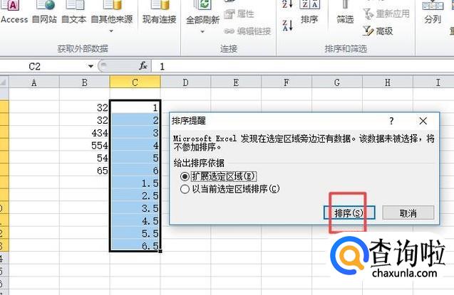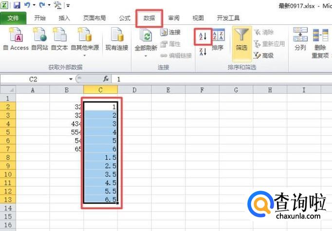 之后我们选中这组数据的单元格,然后我们点击数据,之后我们点击升序;