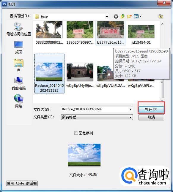 选择需要裁剪的图片,点击打开。