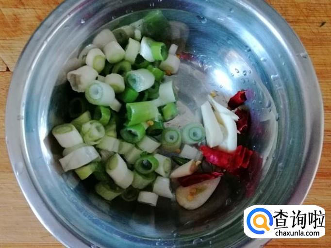 准备些炒菜用的调味品,根据自己喜好准备,比如葱、姜、蒜、辣椒洗净切好待用,也可以提前泡发些黑木耳备用。
