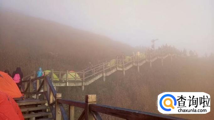 耗时六小时后到达武功山的最高处金顶,傍晚时分,有壮观的日落,山上风大温度低,穿上羽绒服,搭好帐篷,坐在帐篷口可欣赏满天繁星,也可与隔壁帐篷的驴友一起嗨歌,很是热闹。
