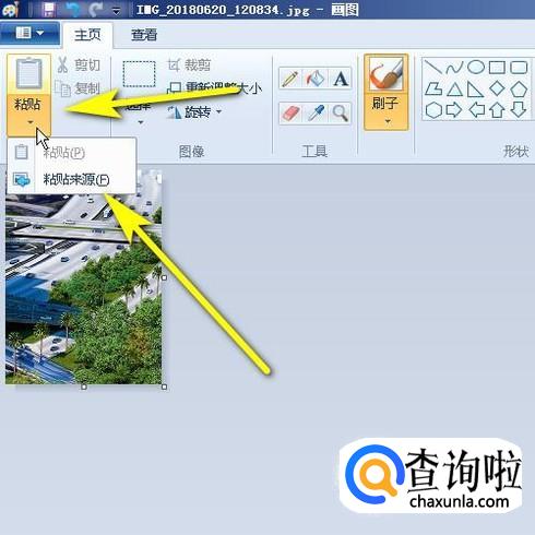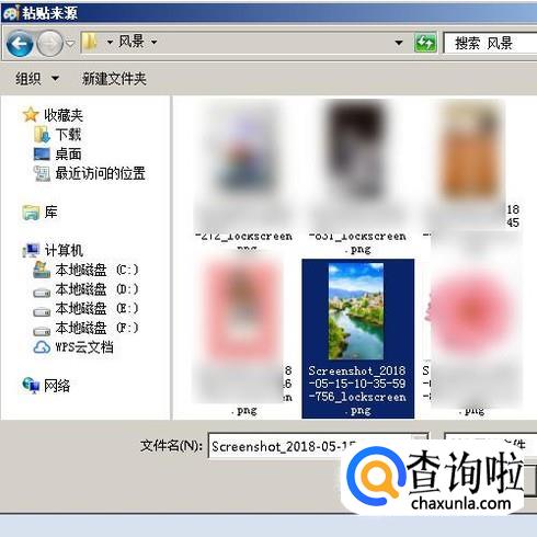 弹出粘贴来源的对话框,从中找到图片素材,点一下选择此图片。再点:打开