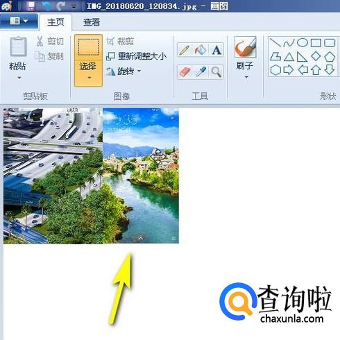 该图片即显示在画图中,图片呈选中状态, 鼠标放在图片上,把图片移到第一张图片的右侧,两张图片边缘紧贴着。