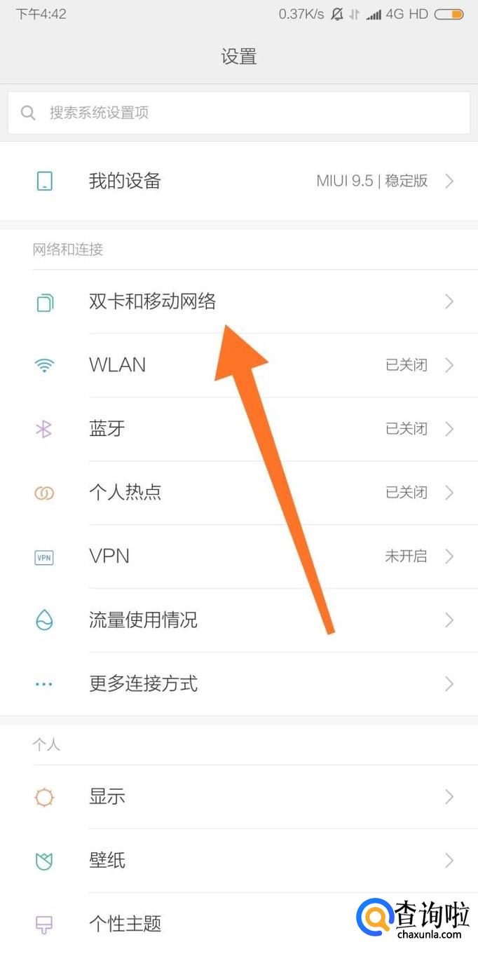 然后点击进入“双卡和移动网络”设置选项。