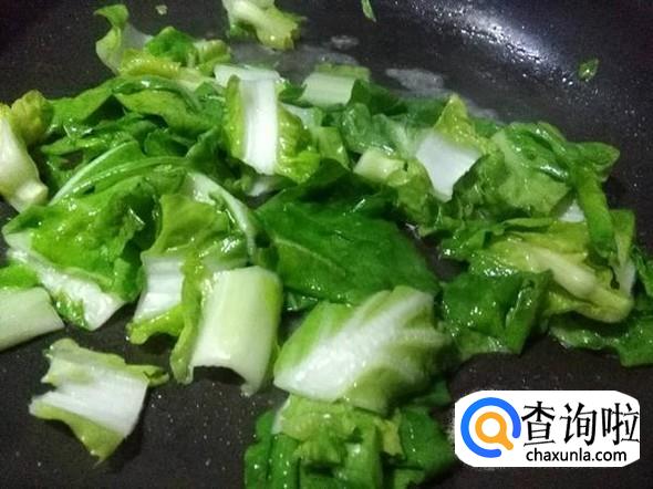 白菜炒至颜色变绿,白菜过油炒一下味道更鲜