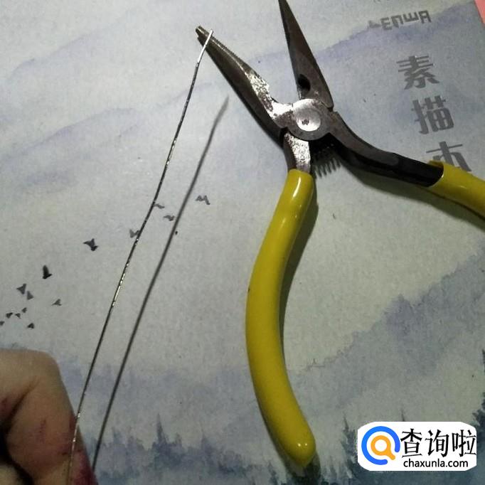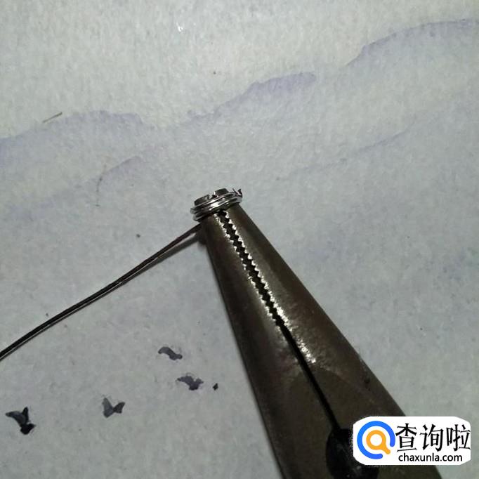 将细铁丝按照如下图所示的方式绕在钢丝钳上,绕6圈左右即可