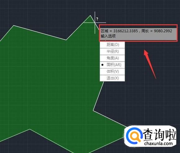 将图形完全填充之后按下回车键可以看到我们绘制图形 的面积和周长面积和周长都计算出来了,如图所示: