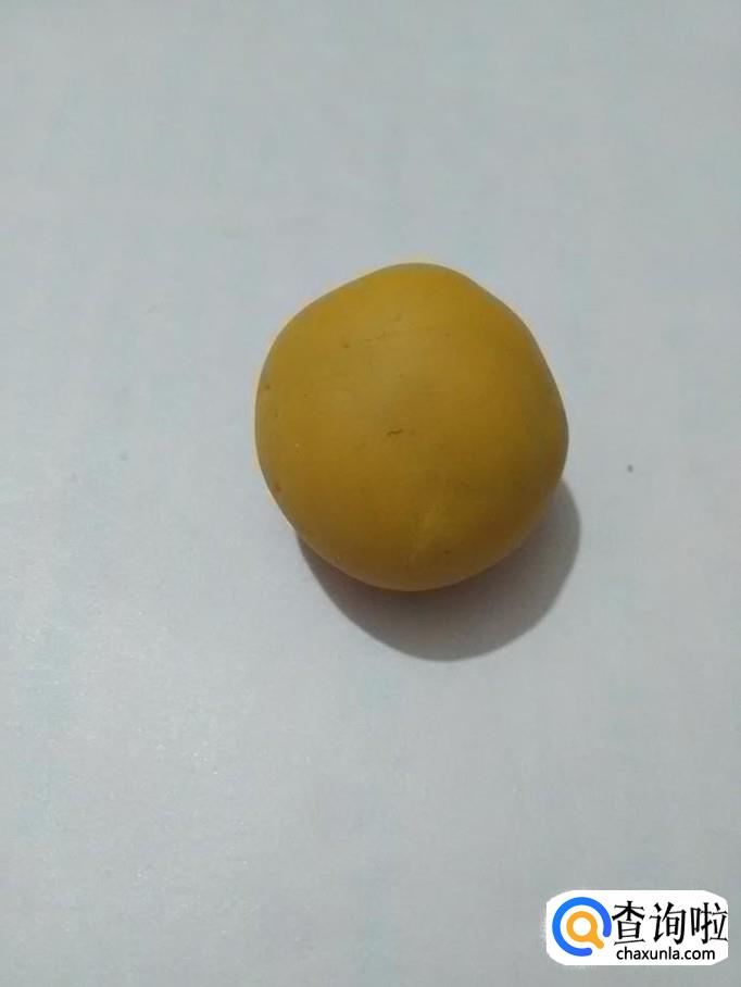 取下一小块橡皮泥,团成圆球,再按成圆片,当作奖杯的底座。