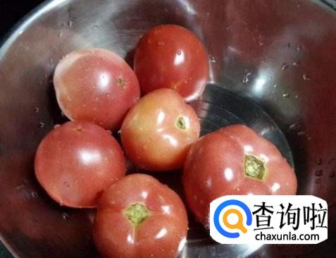 将西红柿洗净,再准备三个鸡蛋。