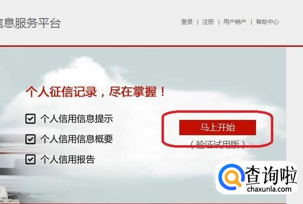 进入之后,进入互联网个人信用信息服务平台,然后点击“马上开始”,查询个人信用报告。