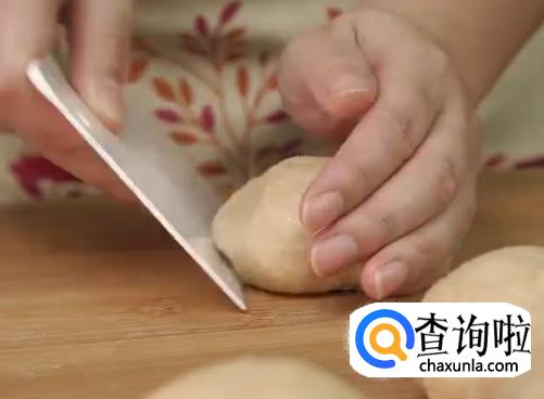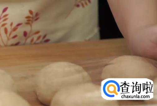 揉好的面团取出分成80g左右的小面团,滚圆盖保鲜膜松弛15min。