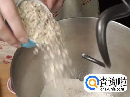 燕麦片50g,高筋面粉200g,盐4g,红糖15g,酵母3g,水1135g,橄榄油10g,白砂糖50g。
