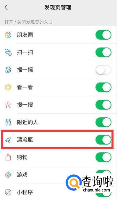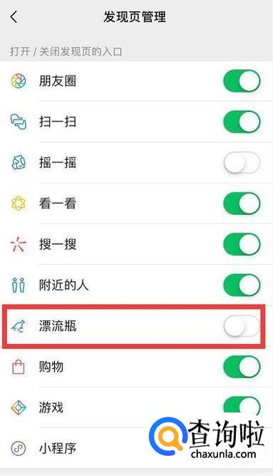 然后就可以看到漂流瓶了,系统默认是关闭状态的。
