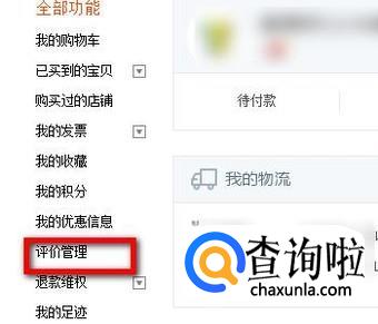 进入到“我的淘宝”这个页面中。再看页面左侧功能导航这里。找到并点击:评价管理