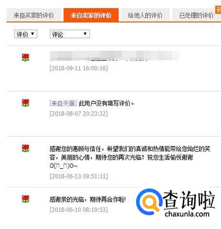 进入到“我的评价”页面中。那么,在这个页面就可以查看自己淘宝的评价啦。这里有来自买家的评价,来自卖家的评价,给他人的评价和已处理的评价。
