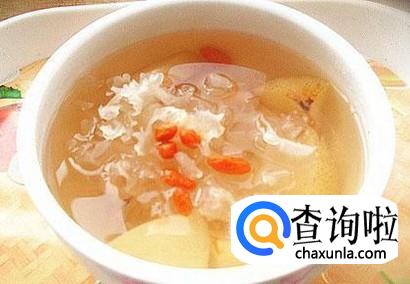 冰糖雪梨川贝汤,将冰糖,雪梨,大枣,川贝,银耳,枸杞放在一起熬成冰糖雪梨川贝汤,对风热感冒引起的咳嗽,效果非常显著。