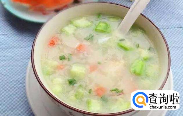 丝瓜粳米汤,丝瓜味甘性凉,可以清热祛痰,将丝瓜和粳米放在一起煮一下,有止咳化痰的功效。