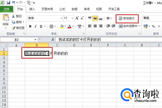 我们选中这个单元格,然后我们点击工具栏中的自动换行;