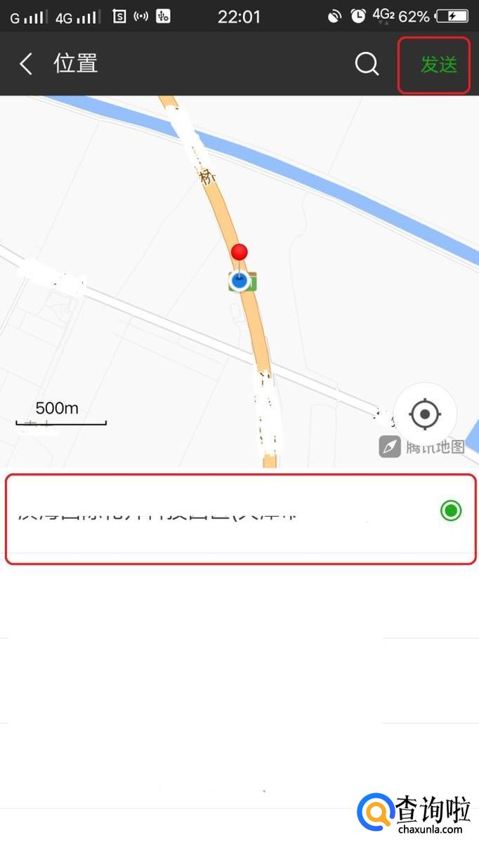 我们来演示一下,点击发送位置,软件会自动定位当前位置,我们点击右上角“发送”即可。