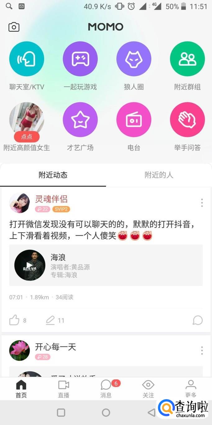 点开陌陌app找到更多选项点击进入。