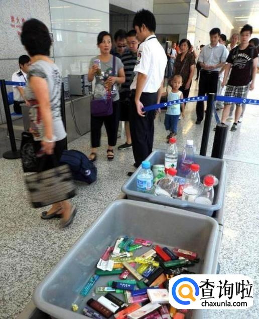 进入安检等候区前,会有工作人员会告知不可以携带打火机,饮料等禁止携带物品
