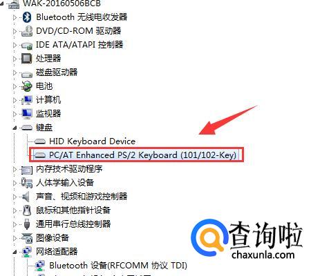 在键盘一项选中“PS/2”右键选择“更新驱动程序软件”;