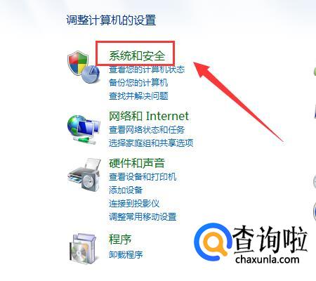 先进入“控制面板”,选择“系统和安全”;