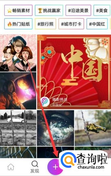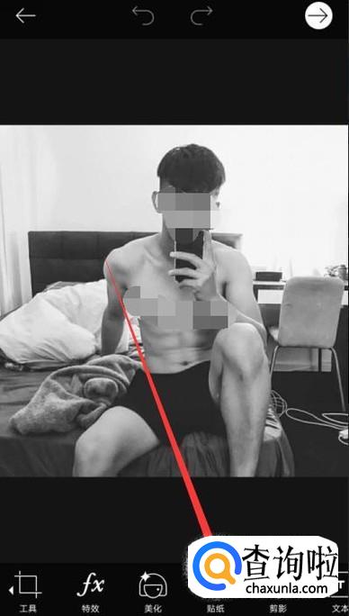 进入之后,选择一张自己的照片,点击“贴纸”,如图所示。