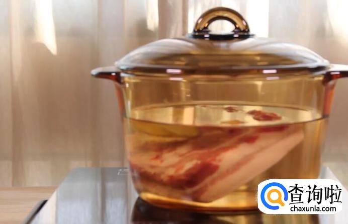 水中放入生姜和料酒,五花肉焯水,大火煮开后捞出。