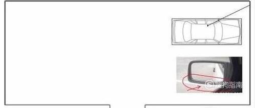 车辆停好准备倒库后,开始松离合走,左边的后视镜最下面盖到虚线后立即将方向往右边打死。