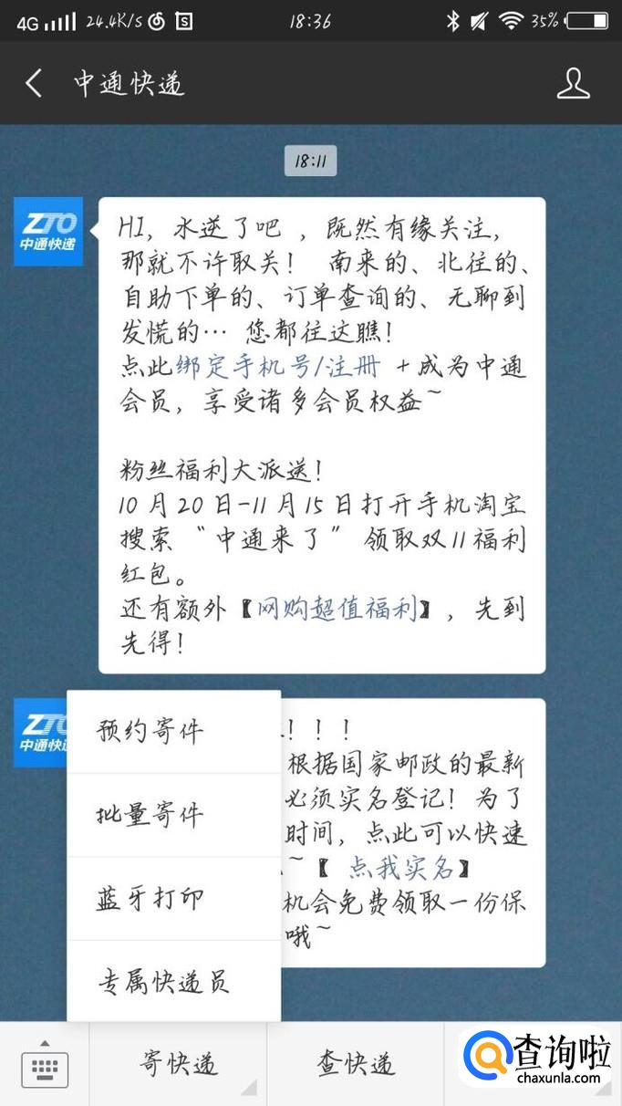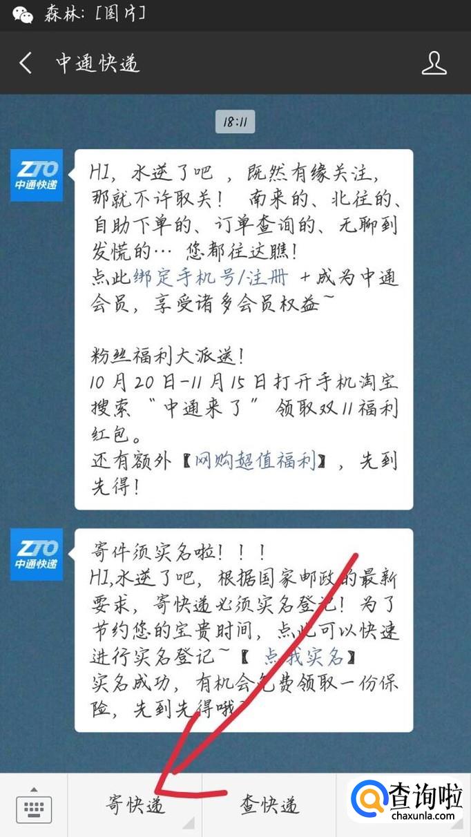 会出现一个新的界面,点击“公众号”选项,如图1箭头所示。会出现一个新的界面,输入你想寄快递的公司,比如中通快递。