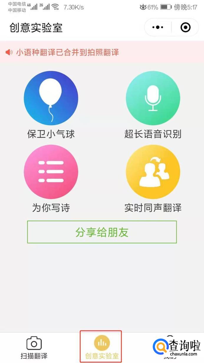点击中间的创意实验室,在这里面还有别的可以选择的功能,大家可以试一试。