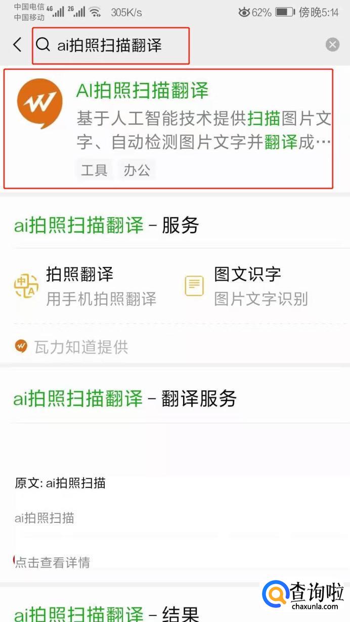 点击微信小程序,在里面搜索“ai拍照扫描翻译”。