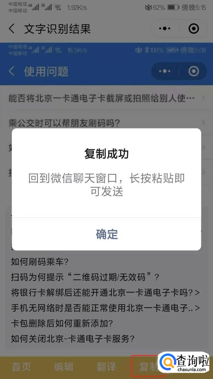 可以点击复制将文字复制给别人。