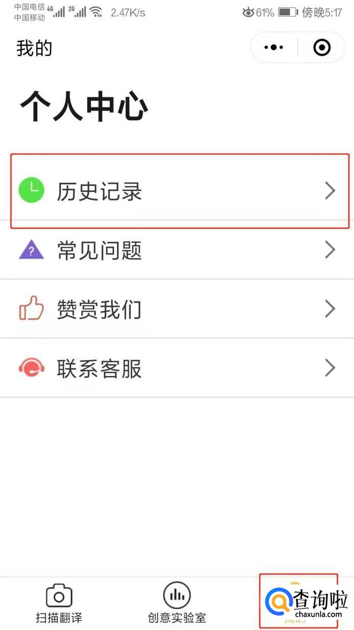 如果需要找历史记录,可以点击右下角“我的”,在历史记录选项里面找到之前翻译过的内容。
